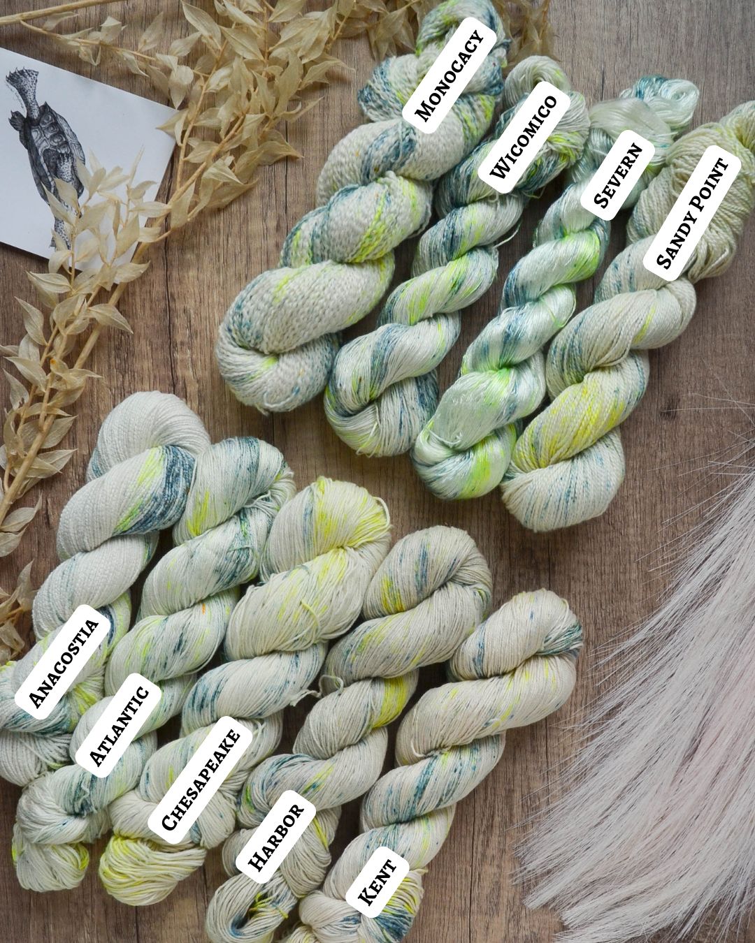 This light and breezy speckle has a dusting of greeny-blue speckles to evoke the way bioluminescence sparkles across the waves after dark -- hinting at the fun you'll have under blacklight when the yellow takes its turn to shine!