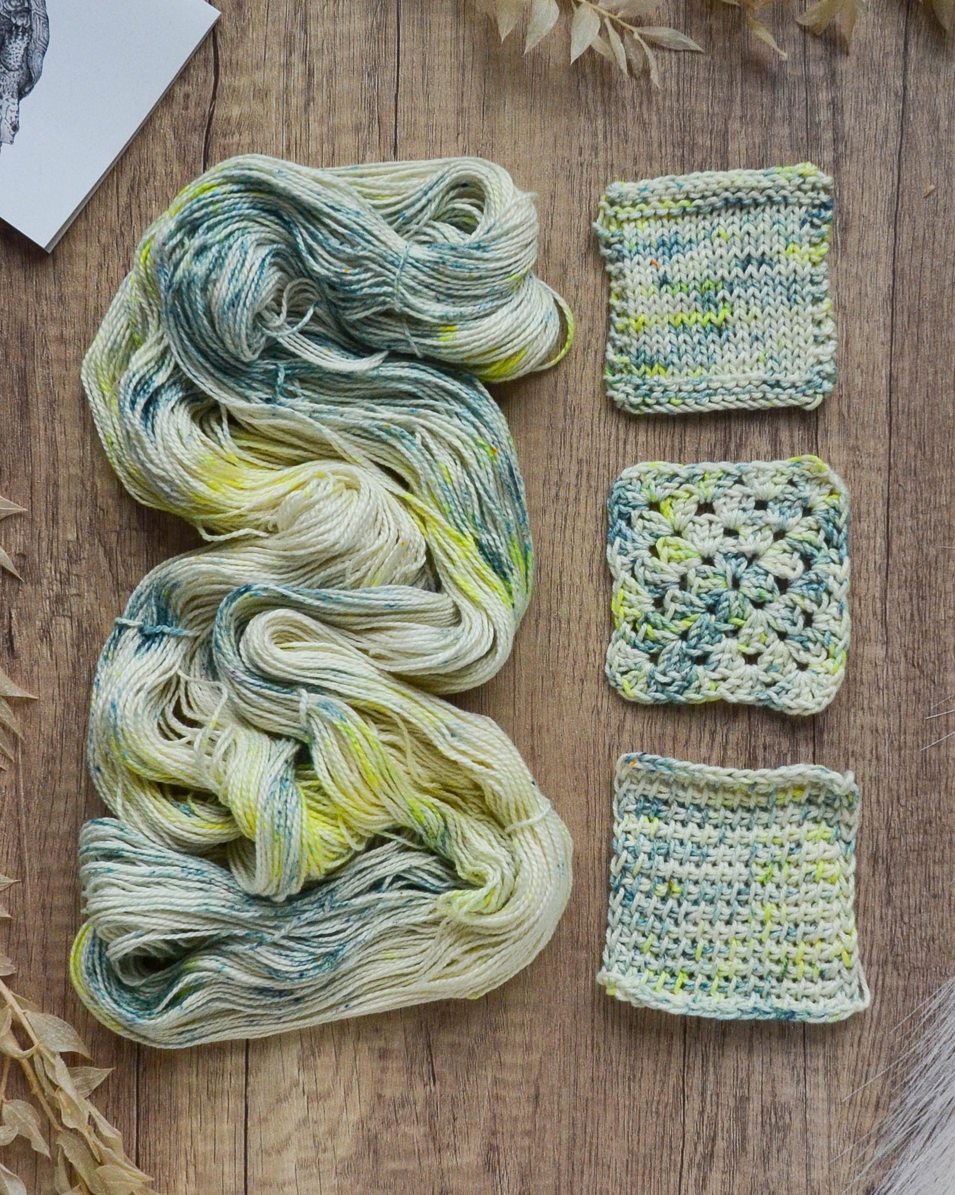 Our yarns are hand-dyed with professional fiber reactive dyes on soft, eco-friendly vegan fibers. We do our best to represent yarn colors accurately in the listing photos, but please keep in mind that different monitors and lighting situations may display colors differently.