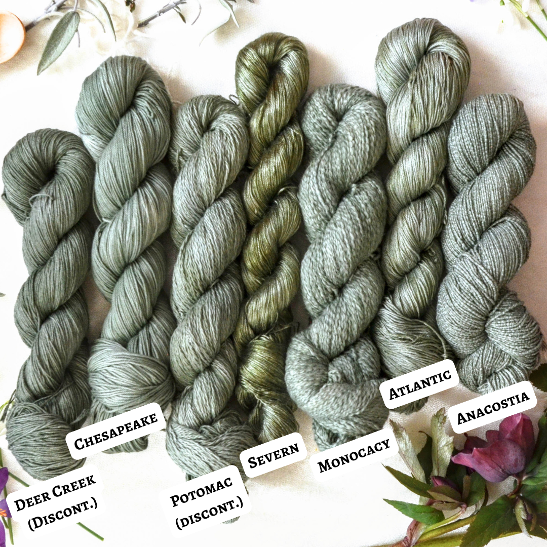 Bases pictured L to R: Deer Creek Fingering, Chesapeake Fingering, Potomac Fingering, Severn Fingering, Monocacy Fingering, Atlantic Fingering, and Anacostia Sock.