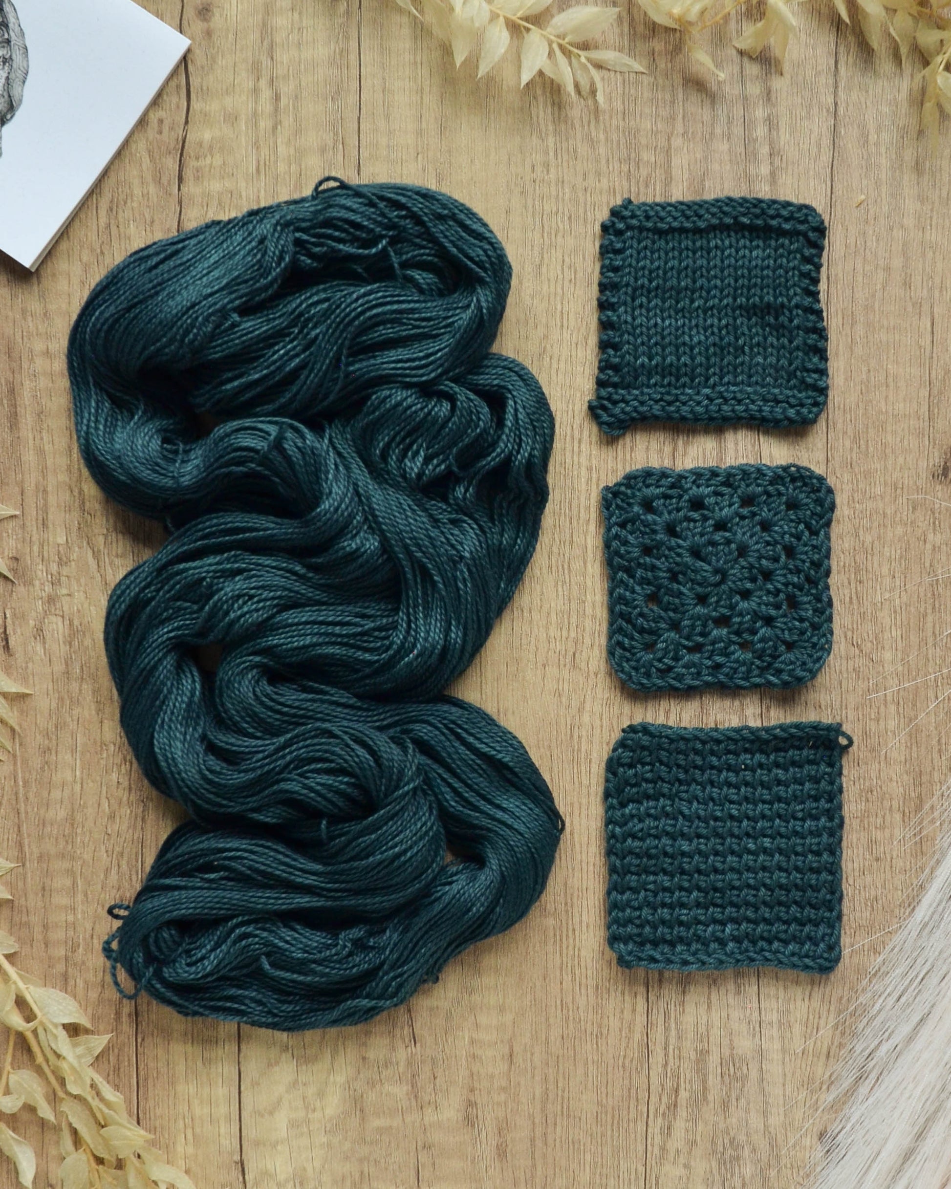 Our yarns are hand-dyed with professional fiber reactive dyes on soft, eco-friendly vegan fibers. We do our best to represent yarn colors accurately in the listing photos, but please keep in mind that different monitors and lighting situations may display colors differently.
