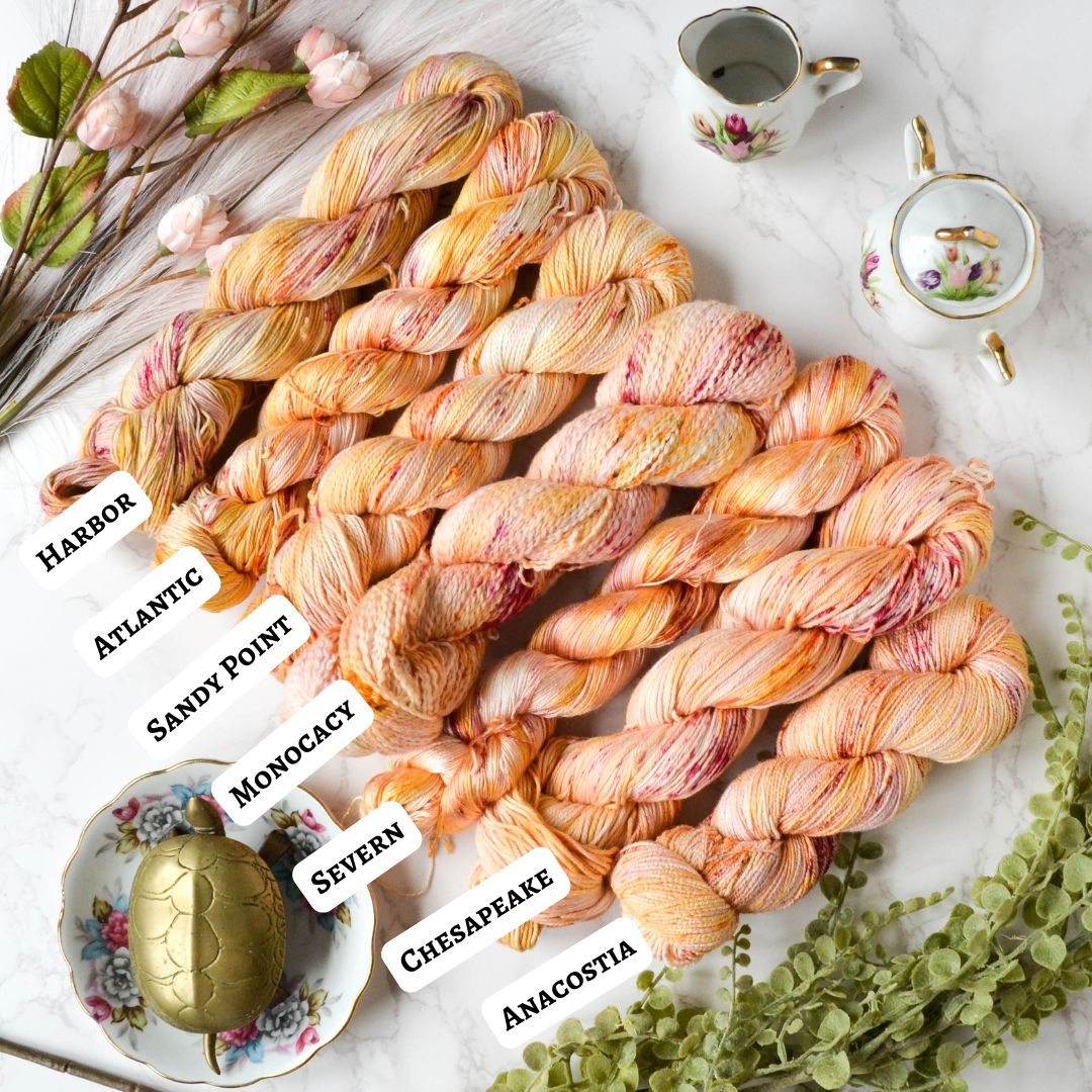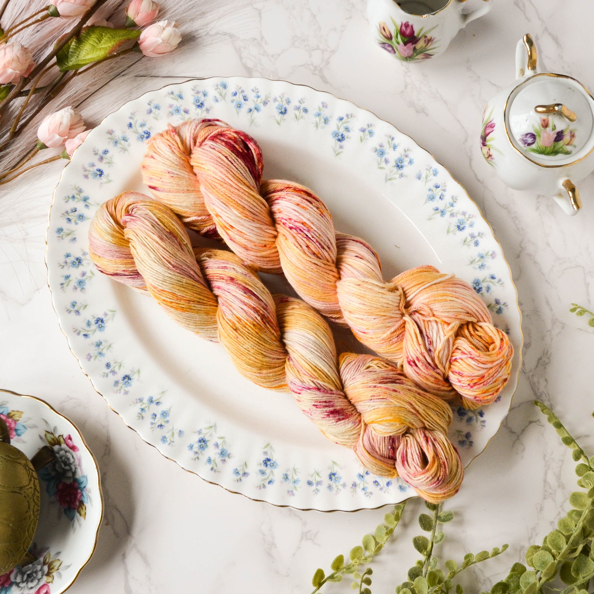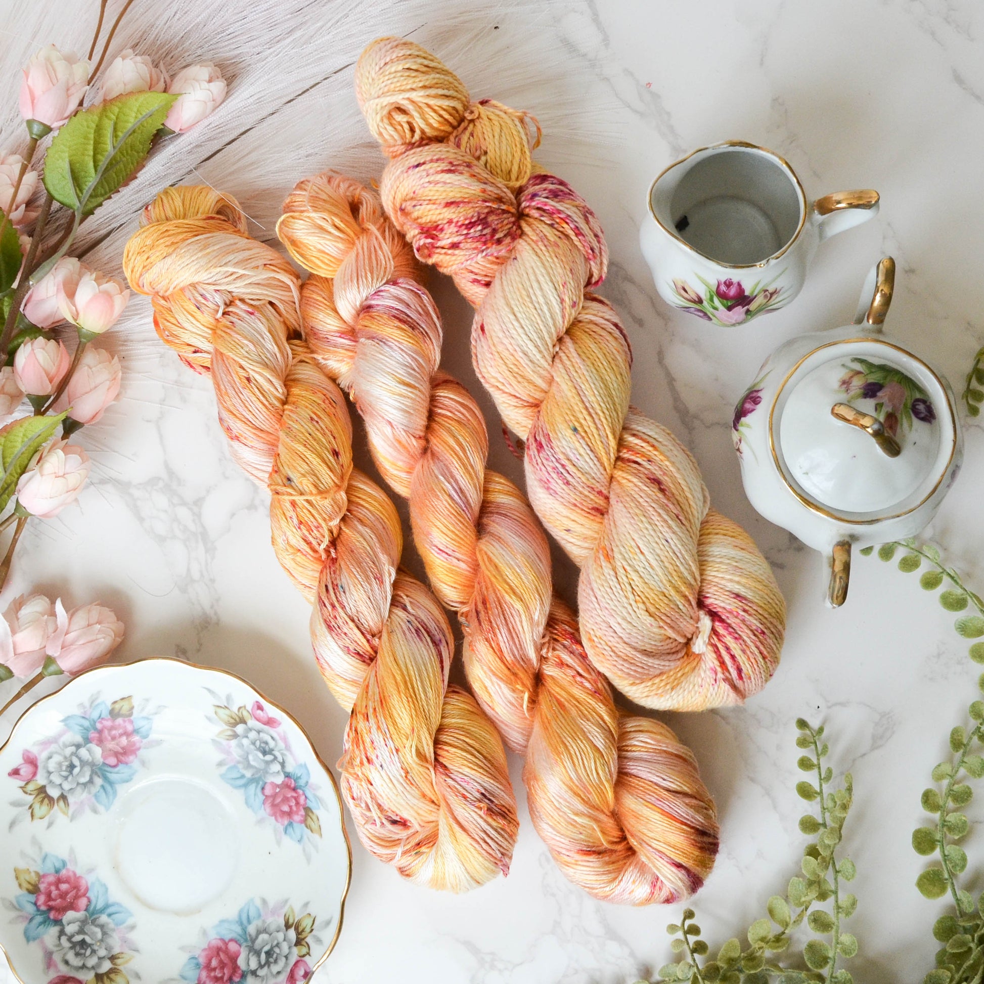 This club is a celebration of both tea and yarn, and will feature a variety of dye styles and colors! You can expect to see more variegates and speckles than semitonals. Teas will be a mix of caffeinated and uncaffeinated; we are striving for a good balance of styles.