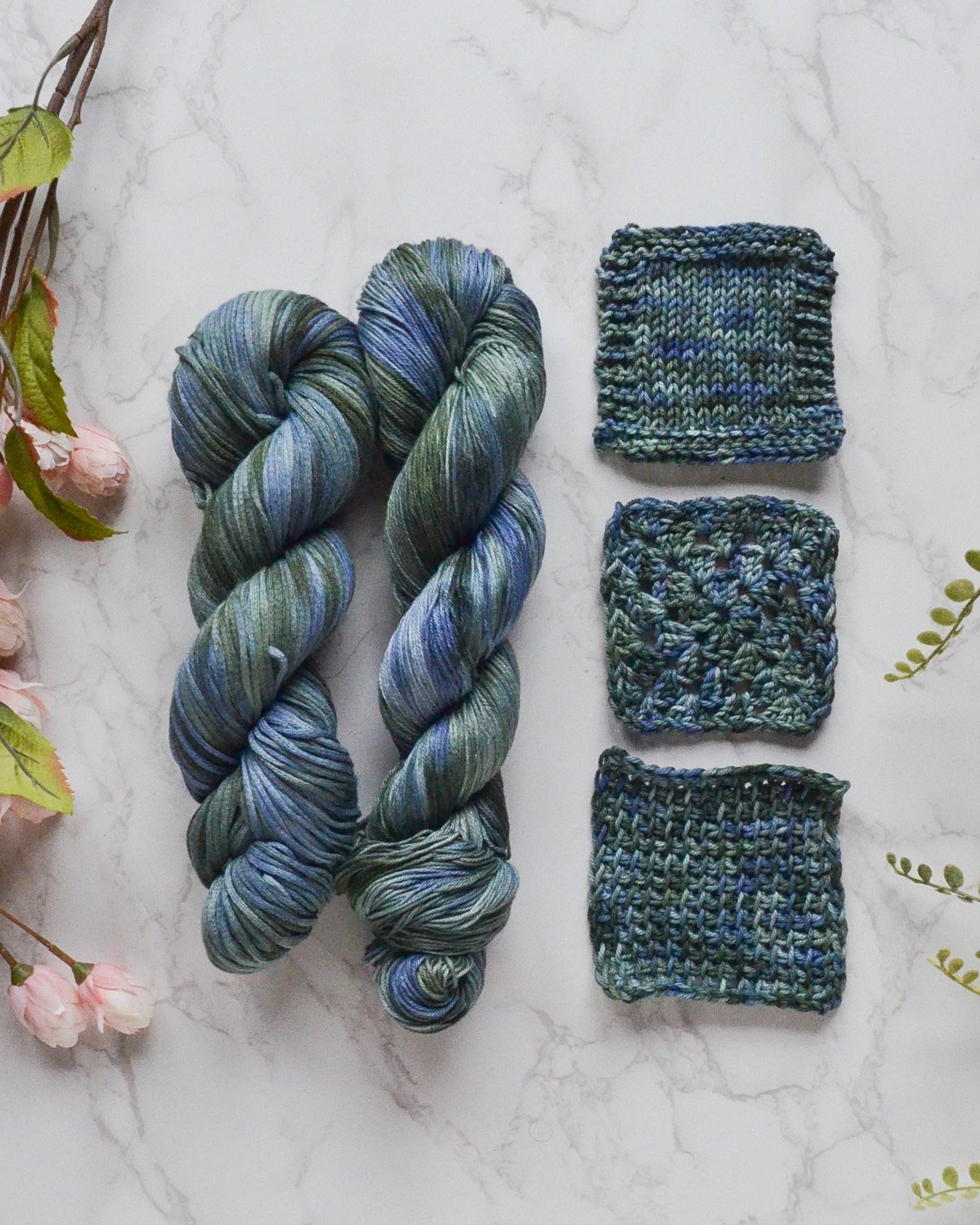 Our yarns are hand-dyed with professional fiber reactive dyes on soft, eco-friendly vegan fibers. We do our best to represent yarn colors accurately in the listing photos, but please keep in mind that different monitors and lighting situations may display colors differently.