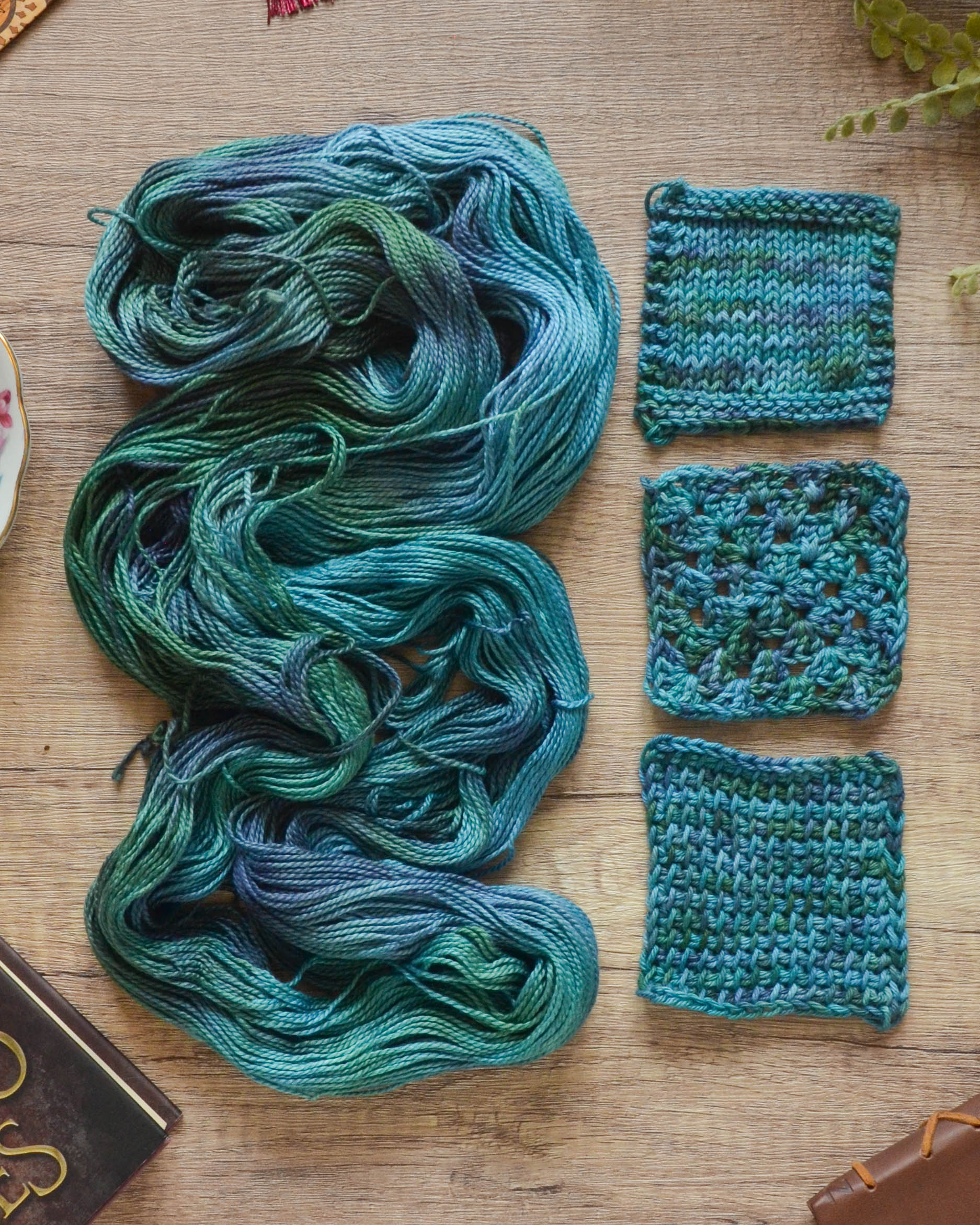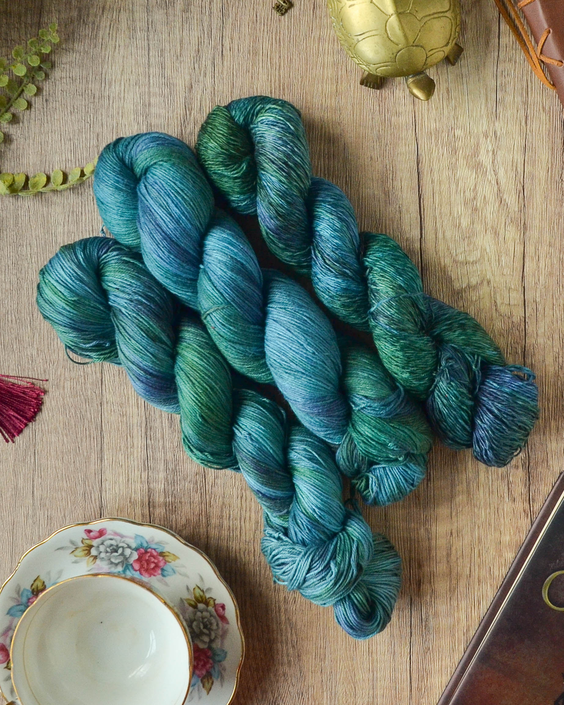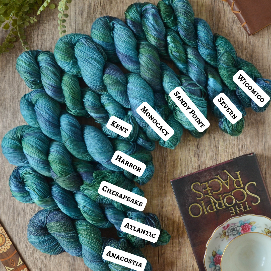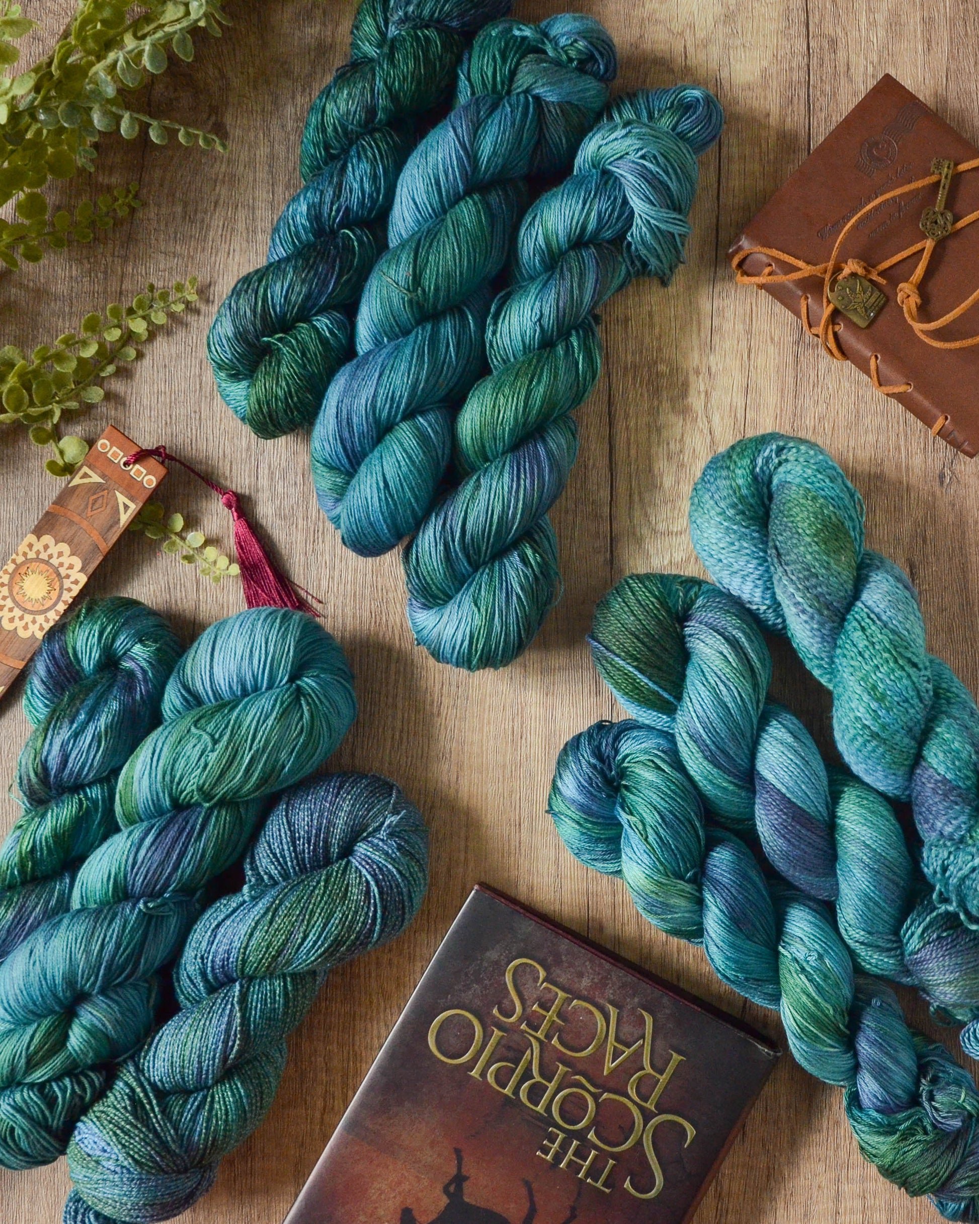 Our July Bookworm color is Seafarer! This is a summery variegate blend of teal, ocean blue, and sea green.